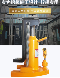 如果安装完成的铝膜和图纸上设计的尺寸有稍微的差别时,工人会使用铝膜施工专用的爪式千斤顶放置到铝膜的底部,通过手动摇动千斤顶的手柄,来精确调整铝膜的高度。如此以来基本上4-5天即可完成一层楼的施工速度。